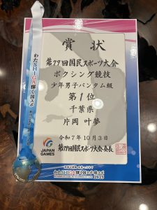 国民スポーツ大会(旧国体)に優勝した片岡叶夢選手とお兄さんの雷斗選手が優勝の報告にいらっしゃいました。