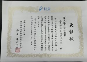 10月10日に開催されたSIG(市原組安全衛生協力会)安全大会にて優良協力会社として表彰されました。